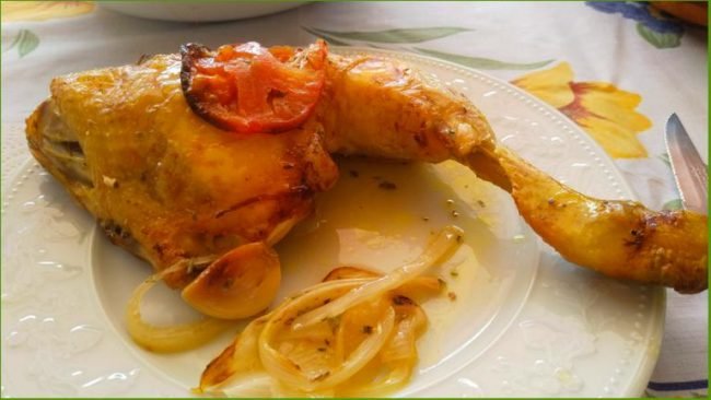 Estos cuartos traseros de pollo quedan muy jugosos, con la piel crujientita y el contraste del dulzor de la cebolla y la acidez del tomate le dan un punto de contraste muy sabroso
