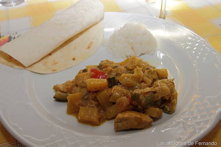 El año pasado estuvieron en casa pasando unos días Silvia y Florián y uno de esos días Florián nos hizo esta receta de curry. Tuvo tanto éxito entre nuestras hijas que Ana la empezó a hacer, pero a pesar de no haberla hecho yo con mis propias manos hemos decidido documentarla en este “testamento culinario” para ellas que es este blog.