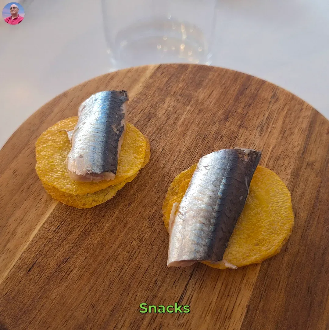 Boquerón, patatas y aceitunas.