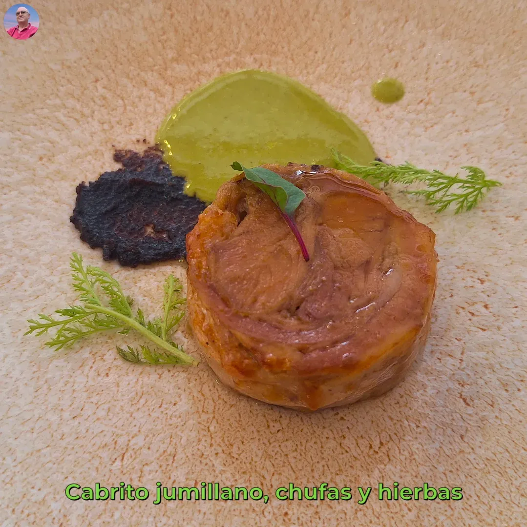 Cabrito jumillano, chufas y hierbas.