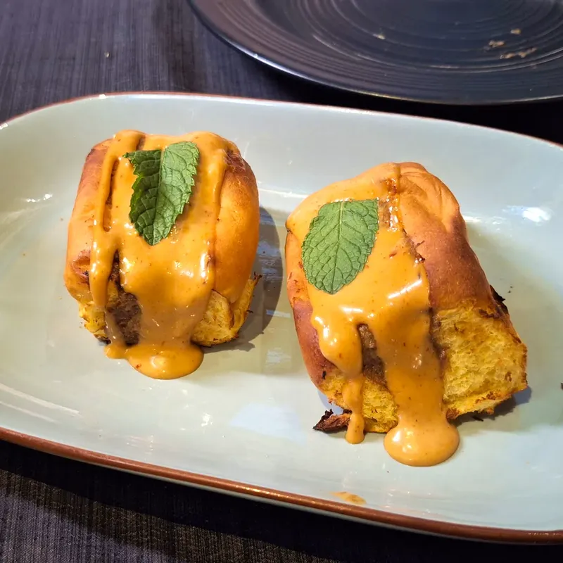 🍴 Los platos elegidos en esta ocasión fueron un camembert ver con trufa, unas alcachofas, unos huevos rotos con jamón, un brioche relleno de carrillera y terminamos con la lasaña thai. Todos los platos estaban muy buenos, pero para mí los irrenunciables son los huevos rotos con esas patatas pochadas en lugar de fritas y la lasaña thai.