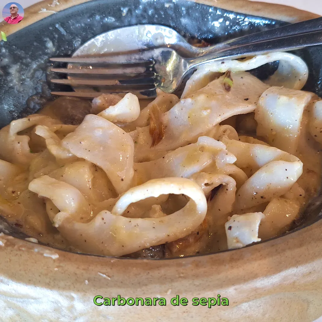 🍴 Después, llegó la carbonara de sepia, y con ella, la primera sonrisa. En lugar de pasta, las tiras de sepia toman el protagonismo, abrazando los ingredientes de una carbonara clásica. Quizá el guanciale podría dorarse un poco más, pero la idea es tan ingeniosa que uno se olvida del detalle. Es, literalmente, una carbonara con acento marino.