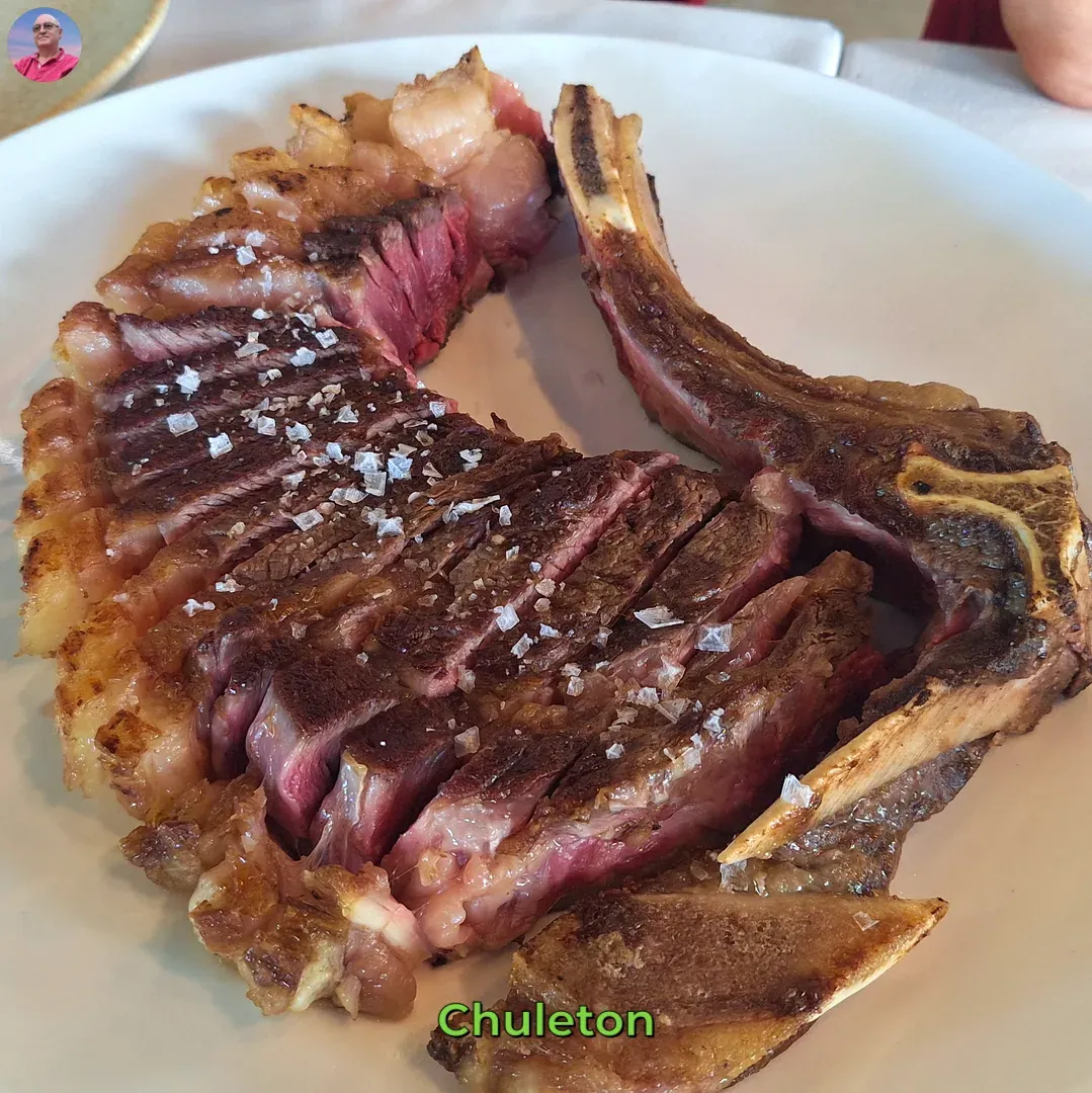 🍴 Como plato principal, un chuletón para compartir entre cuatro. Aunque suelo decantarme más por el pescado, reconozco que el punto de cocción fue impecable y el sabor, de esos que te hacen dudar de tus preferencias.